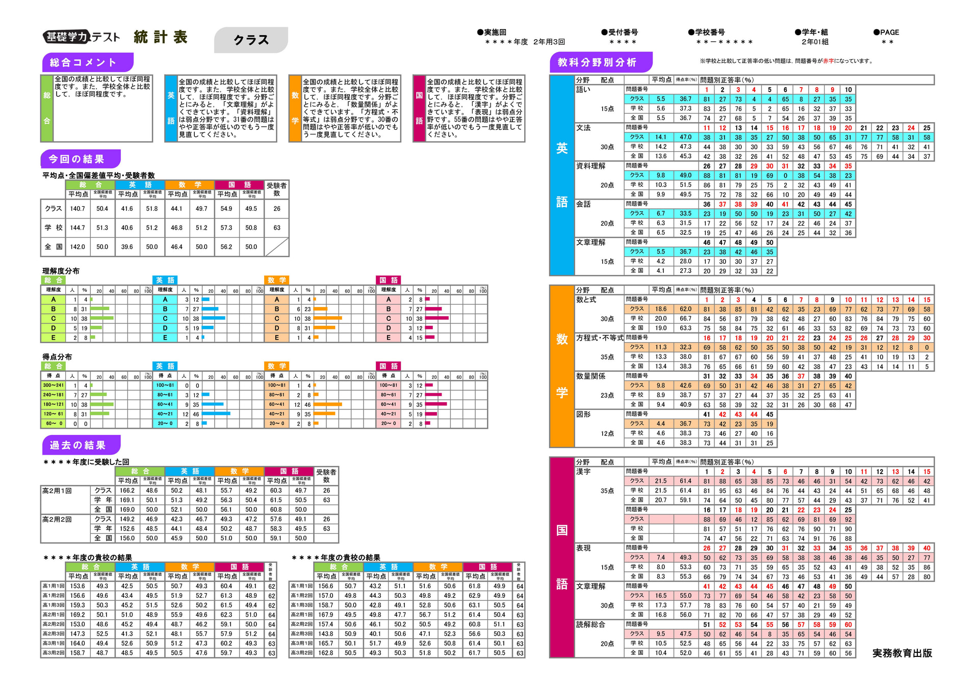- 各学年用ともに毎年同一の問題を出題。年度ごとに各学年の傾向を比較できます。