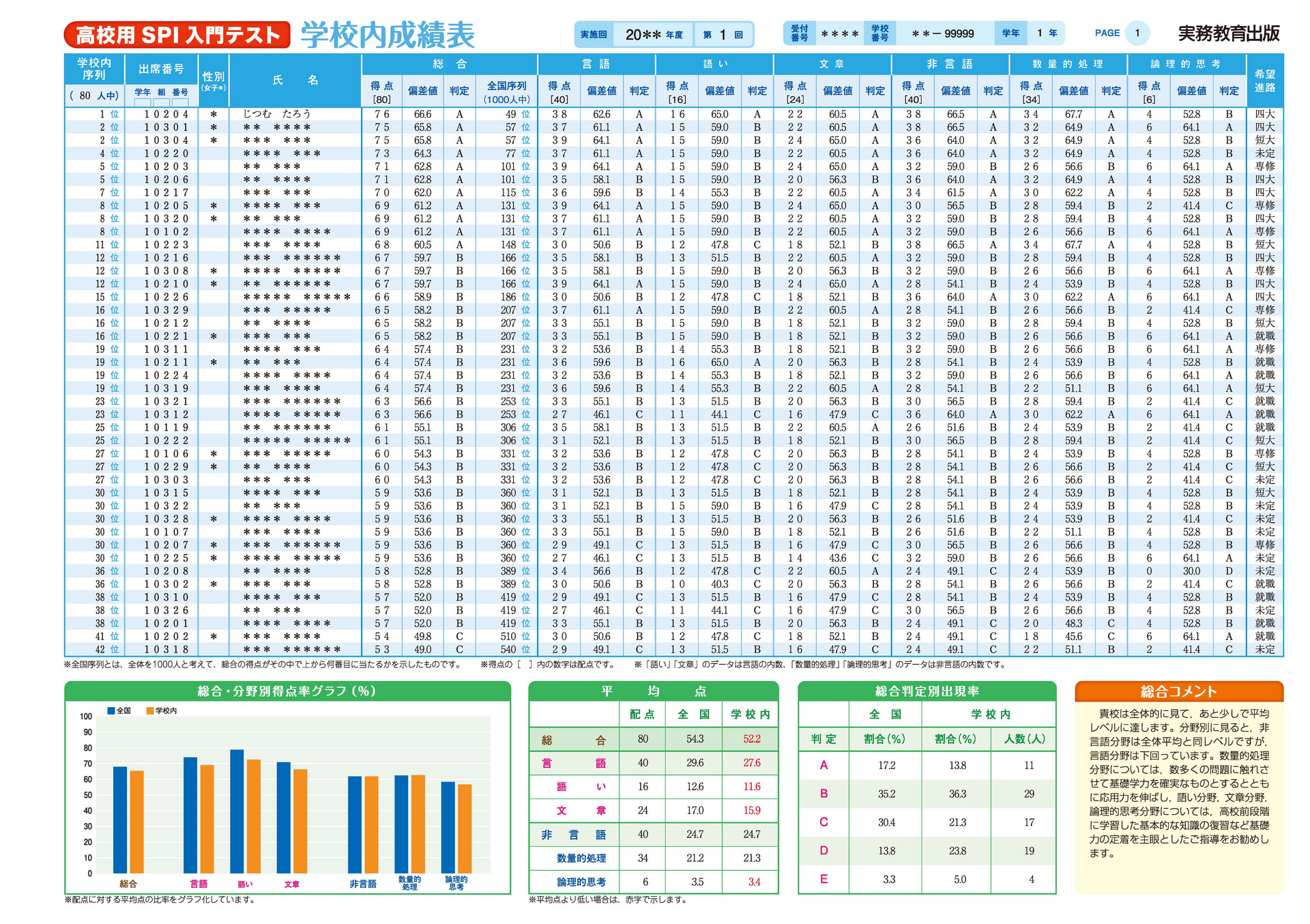 ※お届けする成績資料の「全国序列」は1,000人あたりに換算して表示します。 |
