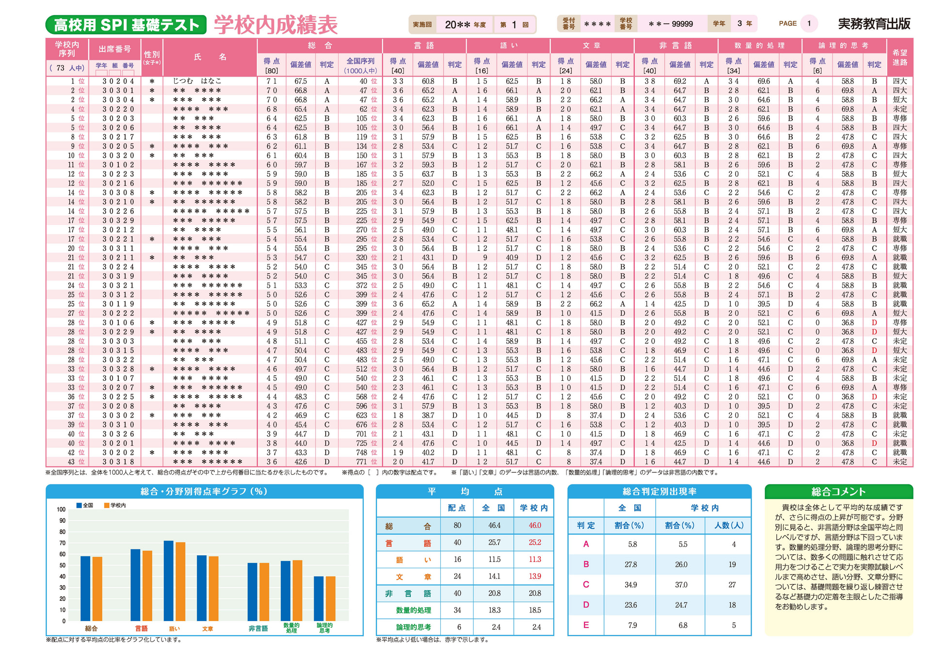 ※お届けする成績資料の「全国序列」は1,000人あたりに換算して表示します。 |