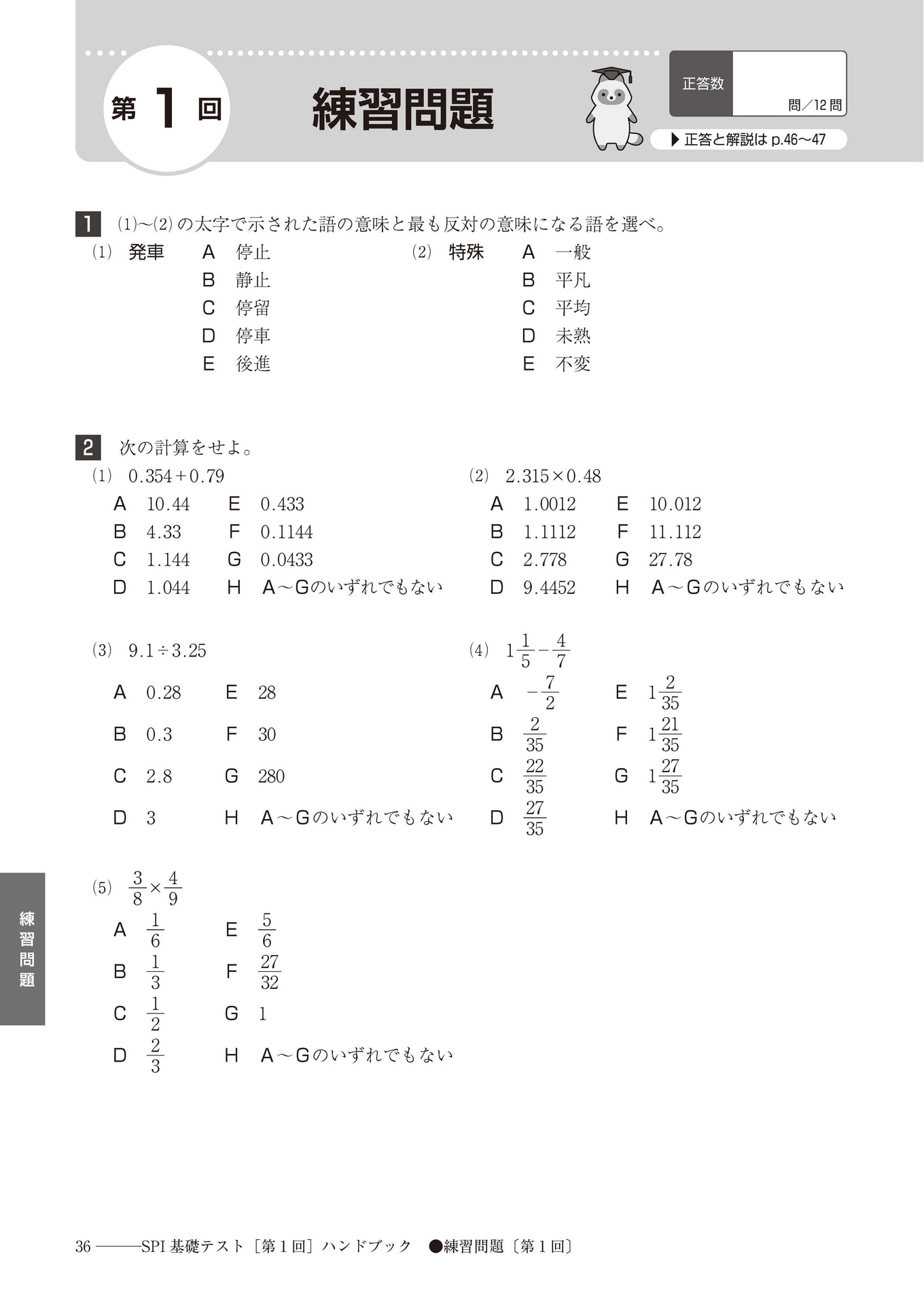 補習教材「ハンドブック」で「SPI」の概要を理解し、出題パターンに慣れることができます。問題を効率的に解く手順を丁寧に示すとともに、テスト形式の〈練習問題〉で、学習内容の定着が図れます。
