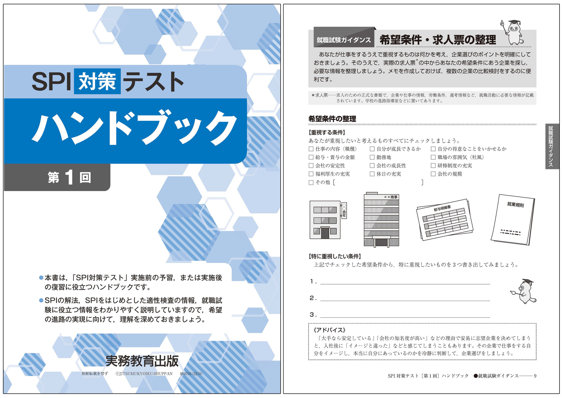 補習教材「ハンドブック」は就職試験情報も満載。就職試験でよく課される「SPI」以外の適性検査の特徴や、就職活動のポイントを厳選した〈就職試験ガイダンス〉を掲載しています。