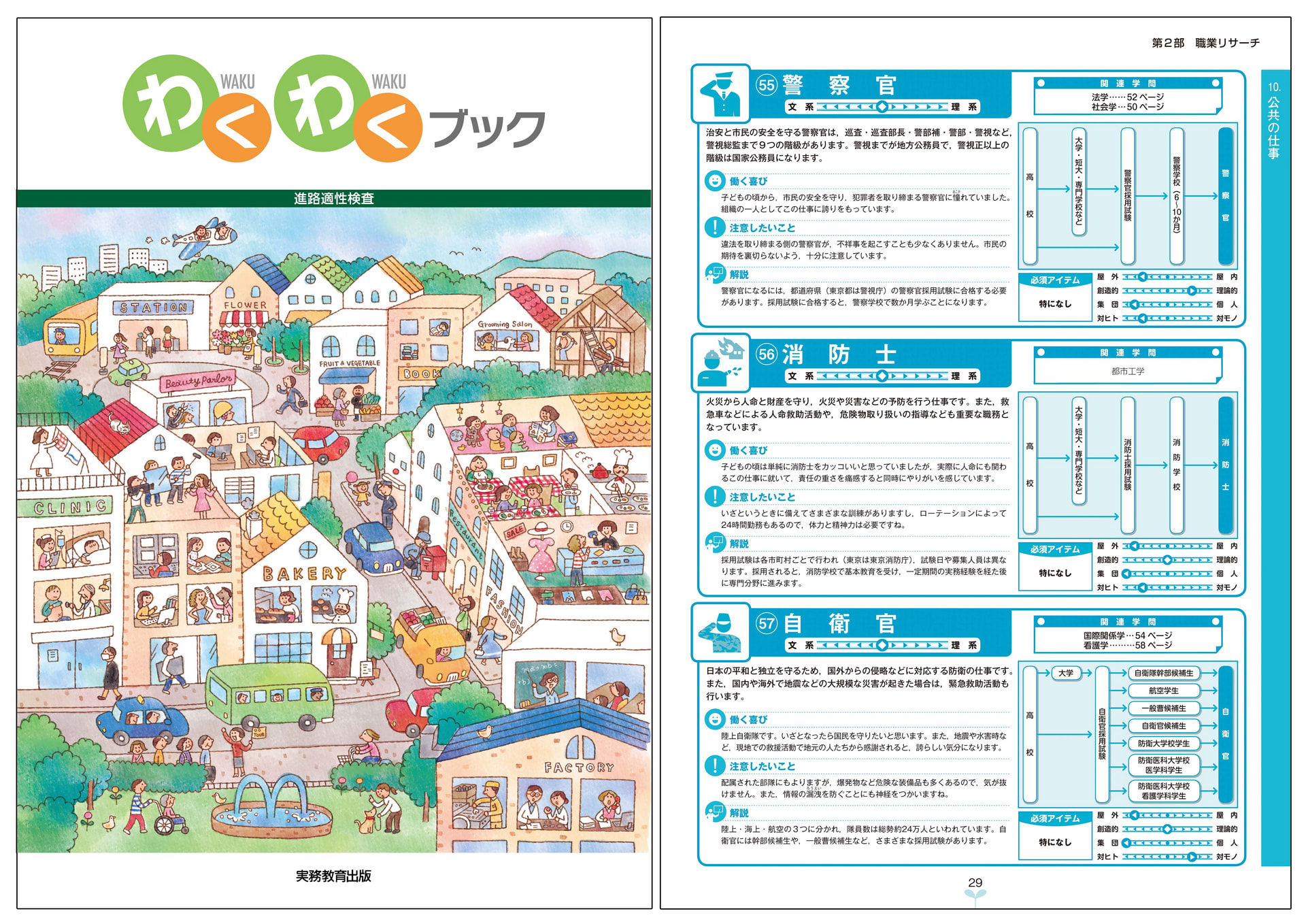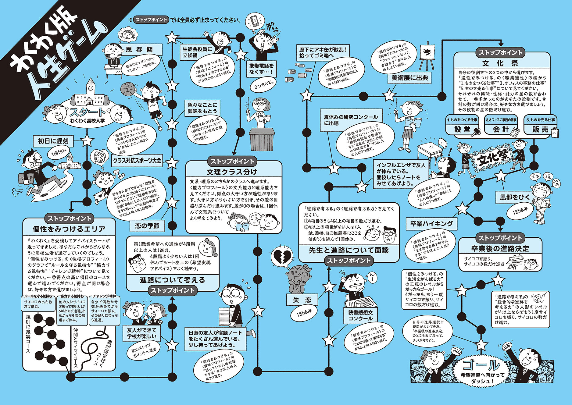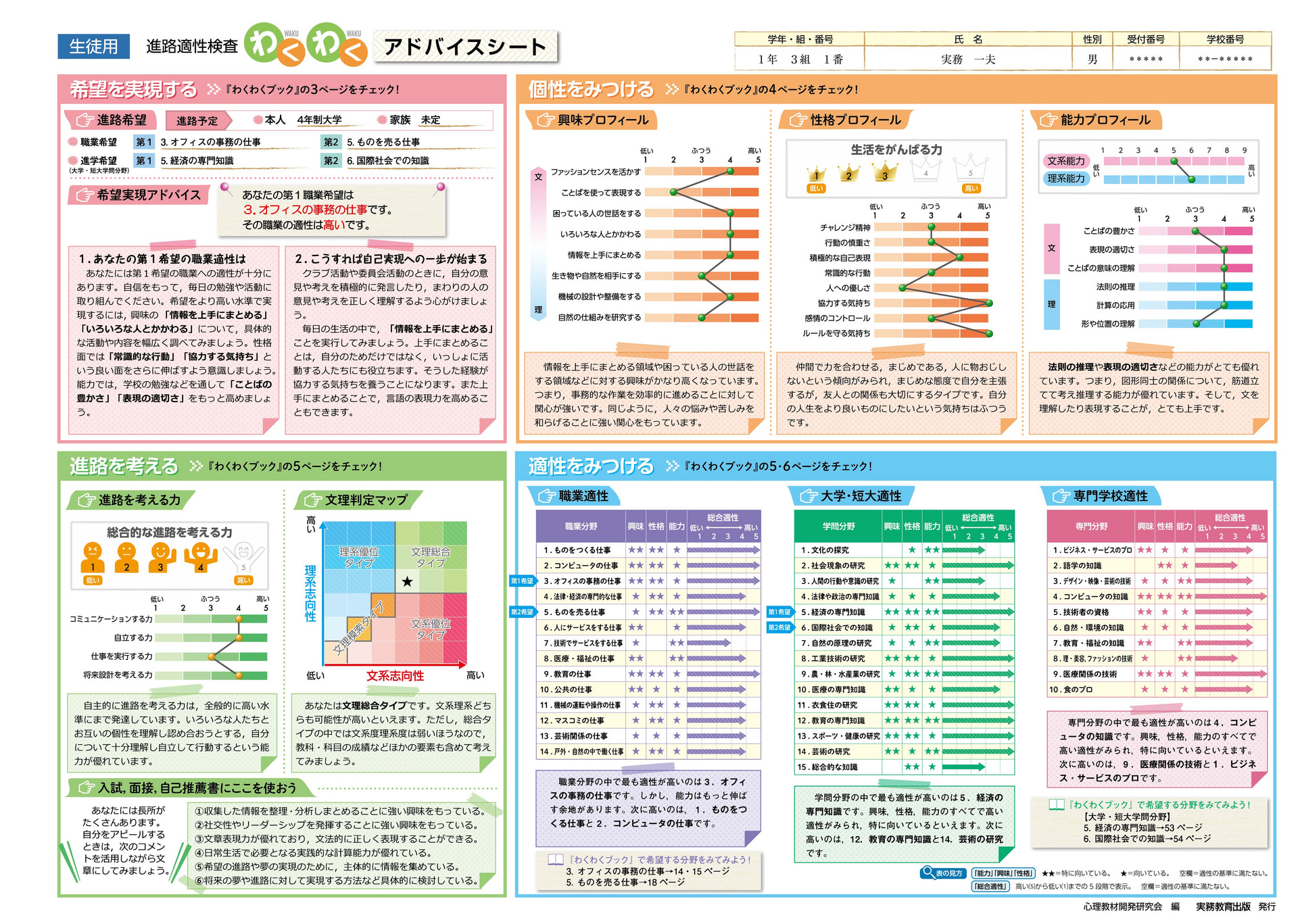判定データの理解を深め、職業と学問のつながりが学べる「わくわくブック」を、受検者全員に進呈。