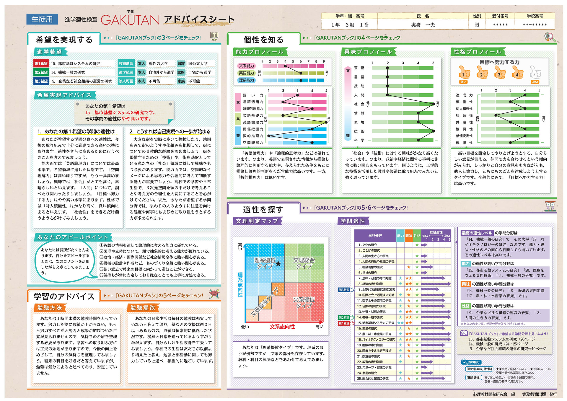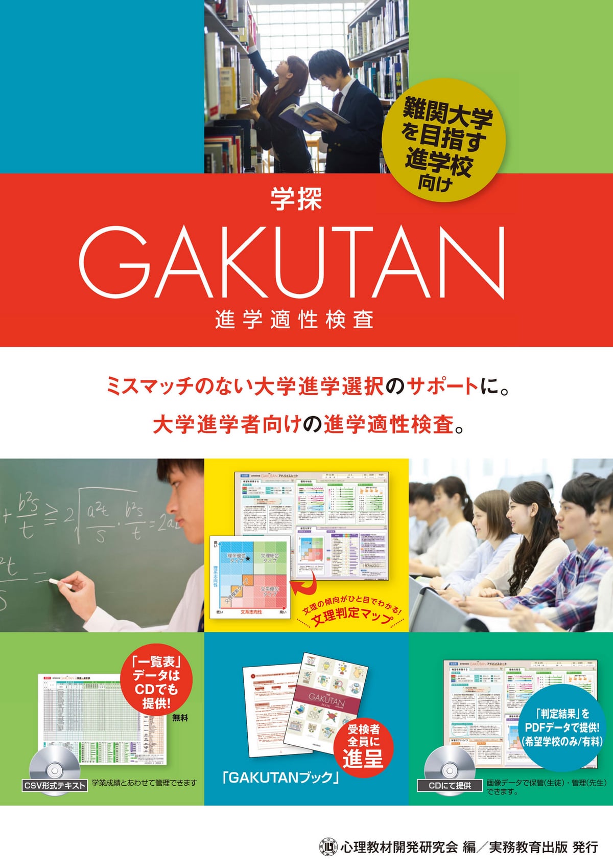 生徒理解シート(教師用)、アドバイスシート(生徒用)、一覧表・統計表(教師用)※無料CD付(CSV形式テキストファイル)、GAKUTANブック(生徒用)、マニュアル(教師用) |