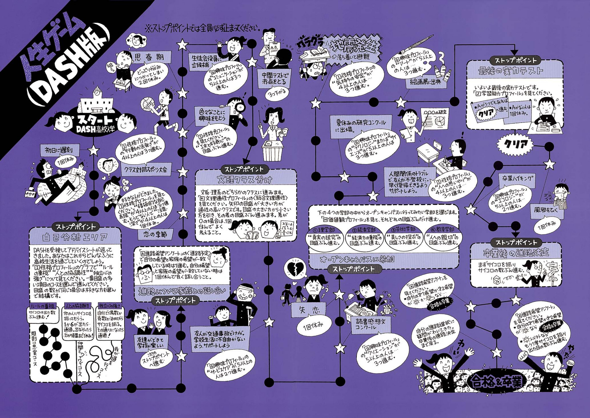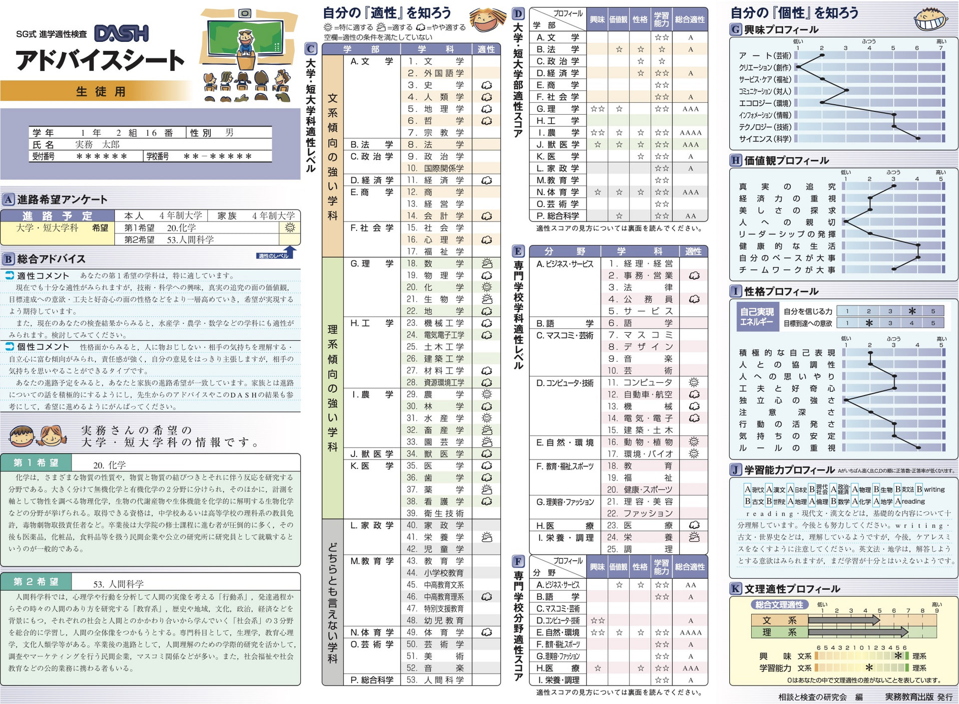 大学・短大の多種多様な学部学科を的確に分類・統合し、16学部系53学科系について、適性をわかりやすく、ビジュアルに判定。
