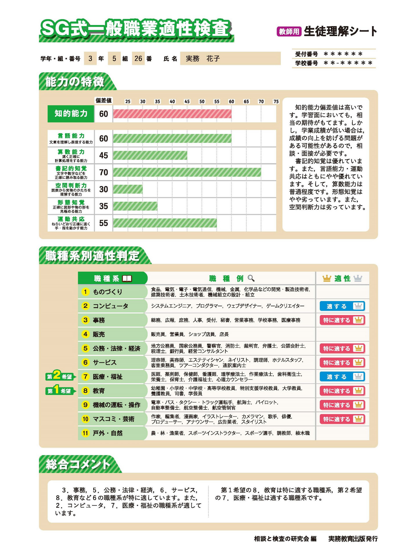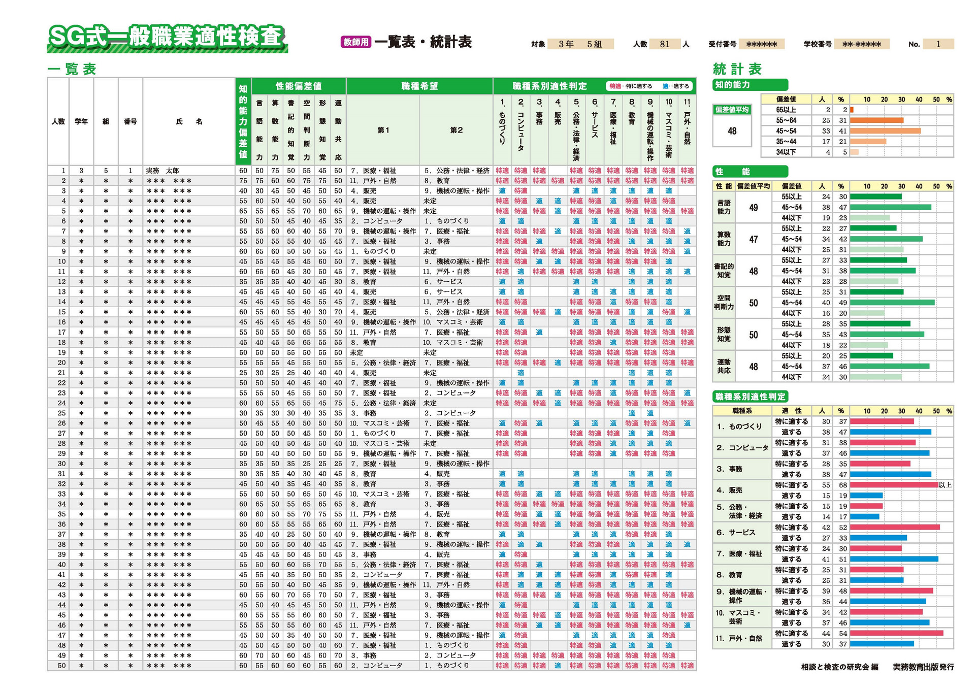 『SG式一般職業適性検査』は、11職種系への職業適性を判定する、最も標準的な検査方式を採用した適性検査です。知的能力、職業性能の観点から職業適性を判定します。