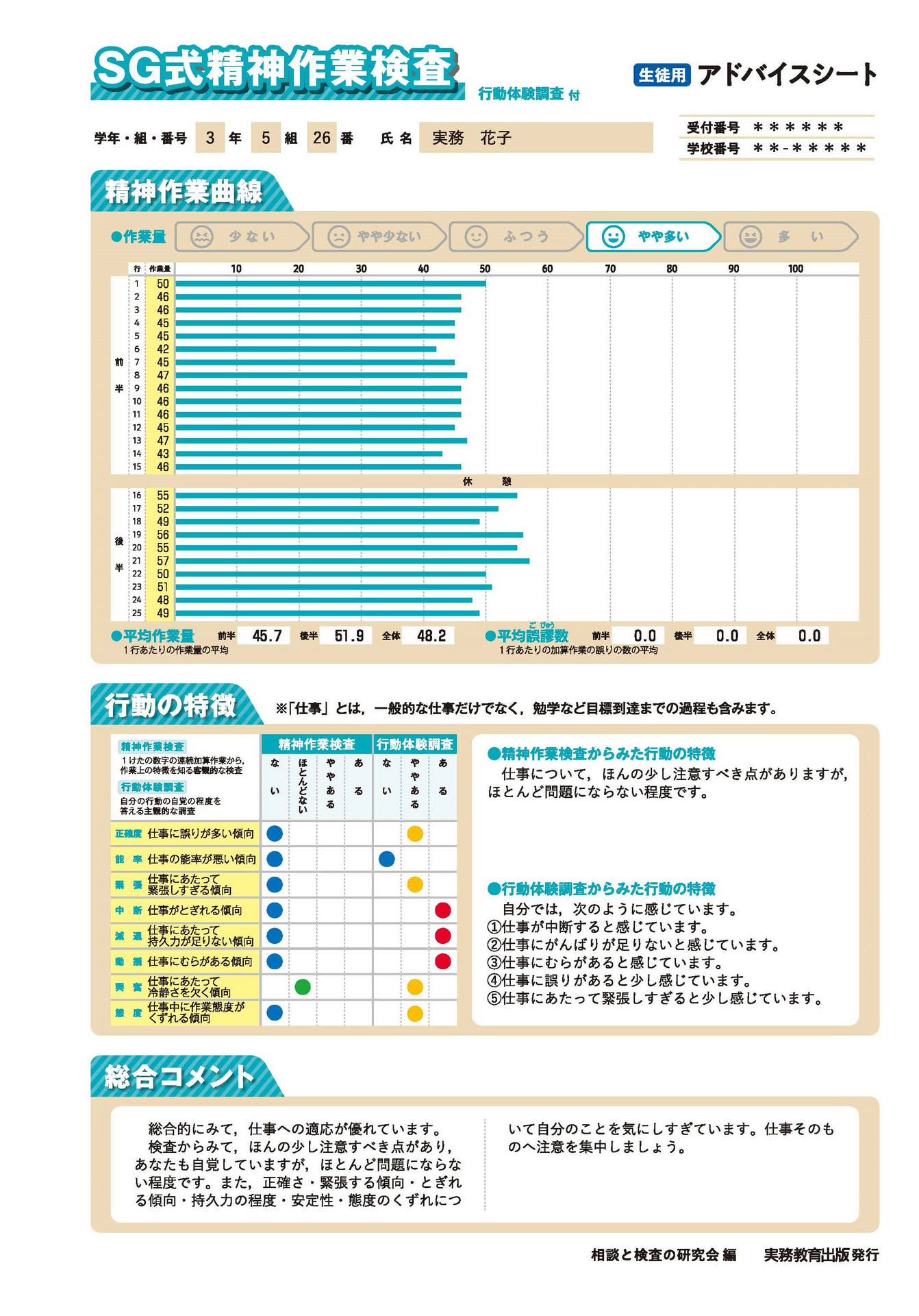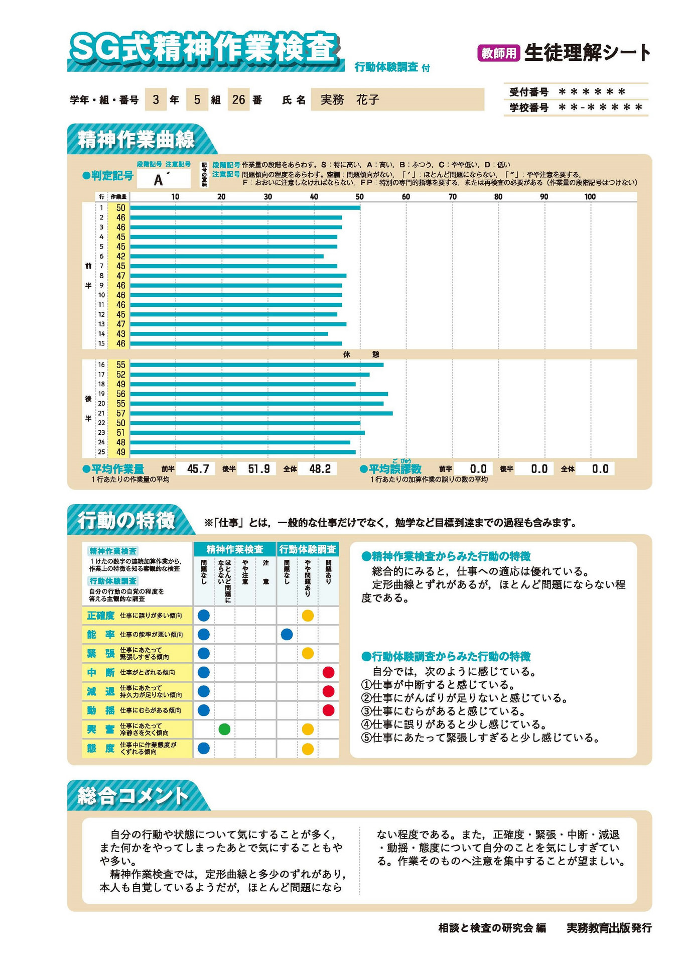 商品名:SG式精神作業検査(クレペリン検査)[行動体験調査・付]