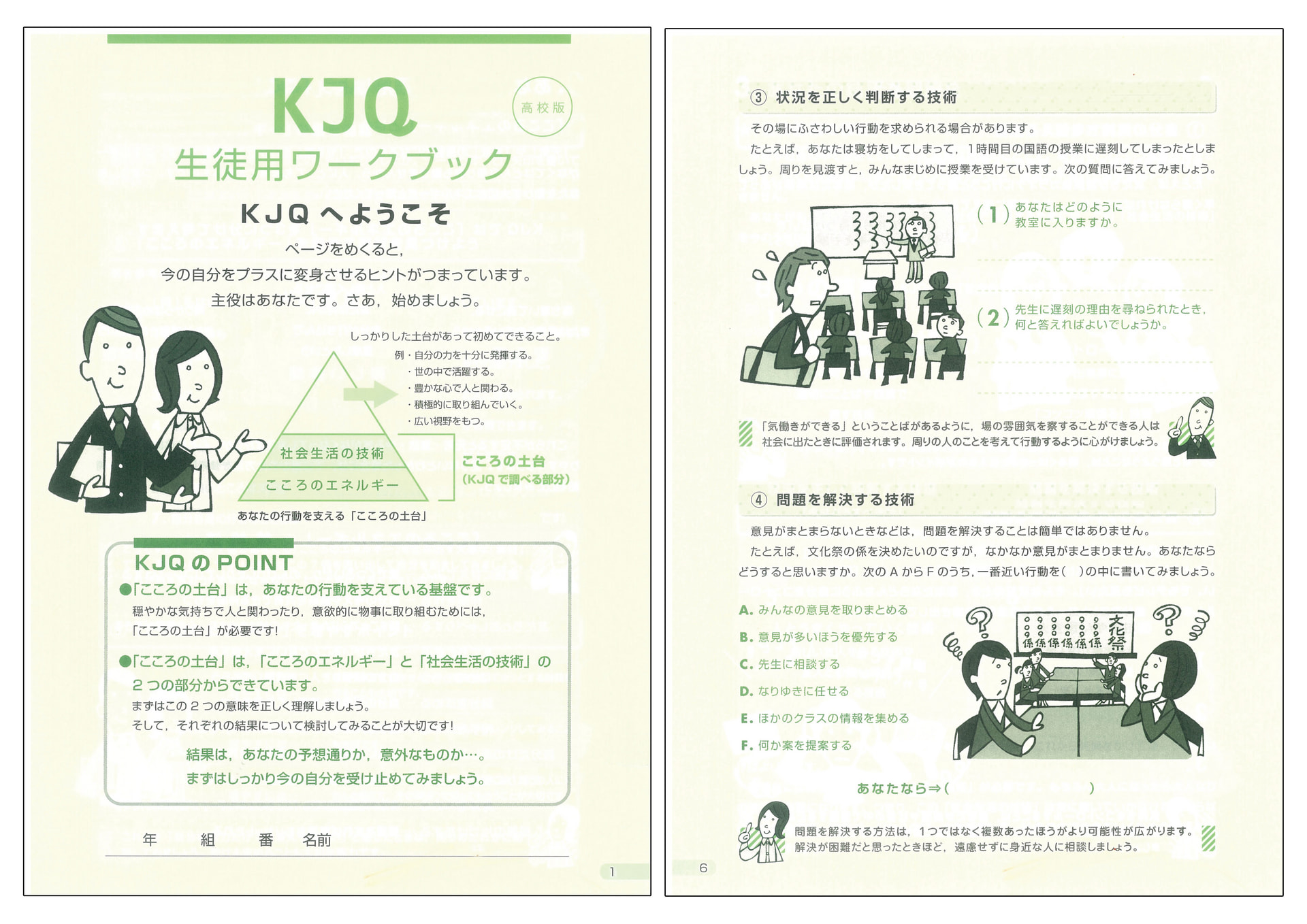 『KJQマトリックス』を活用するための教師用指導書です。『KJQ』の目的や内容、判定結果の見方、ワークブックの活用方法について詳しく解説しています。また、さまざまなケース別の集団、個人に対して指導を行った事例をご紹介します。