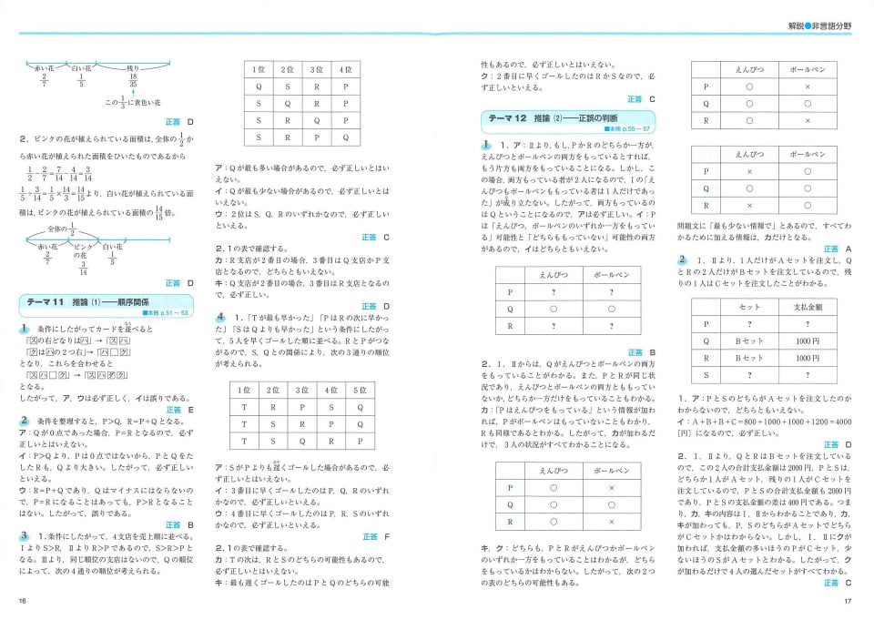 非言語分野(算数・数学、論理的思考領域):分数・小数の計算/四則の混合算/割合/比/推論/