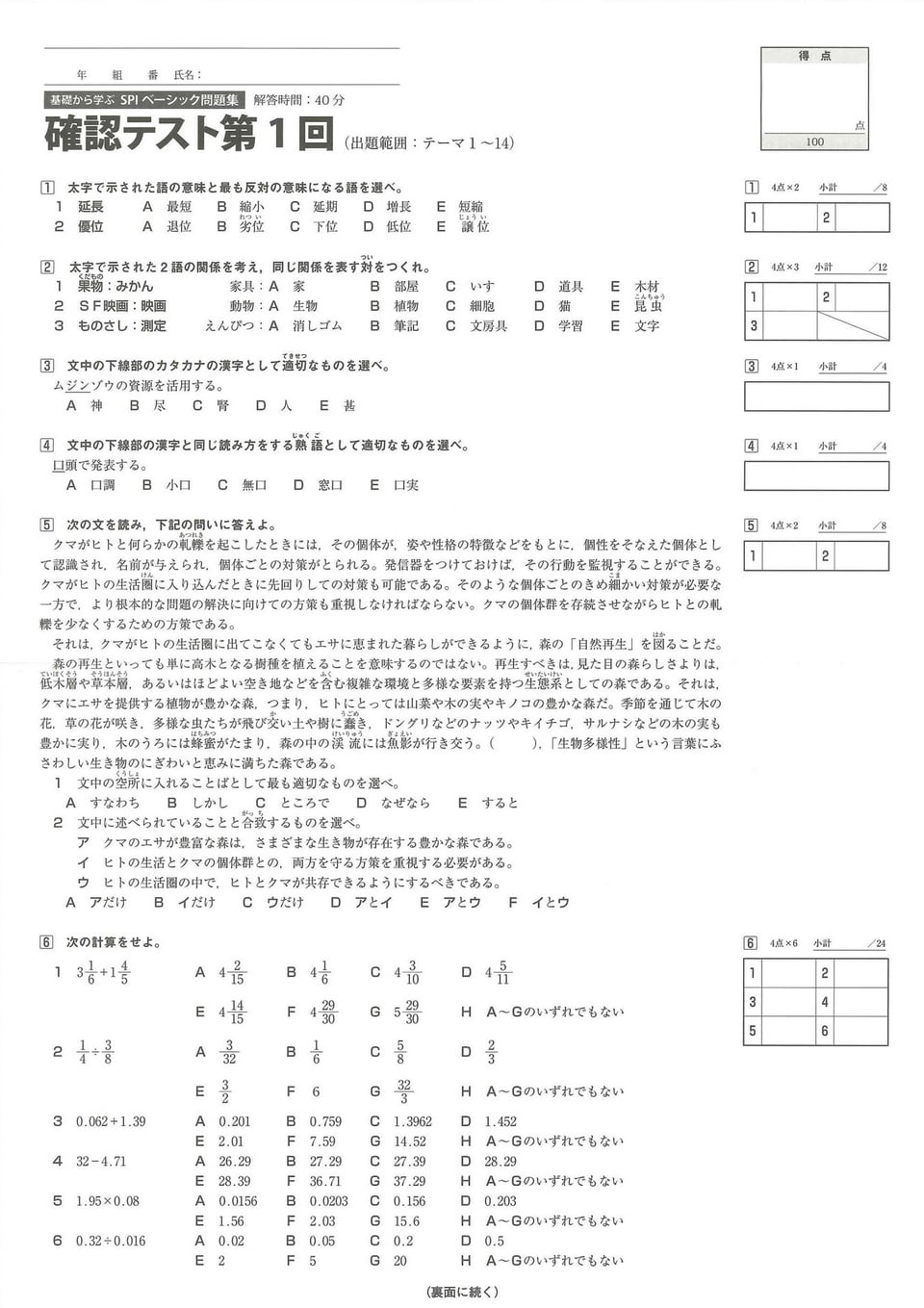 本番レベルの問題も盛り込んだ、実際の「SPI」よりもやさしい問題を中心とした構成です。基礎固めから実戦力養成まで、無理なくステップアップできます。