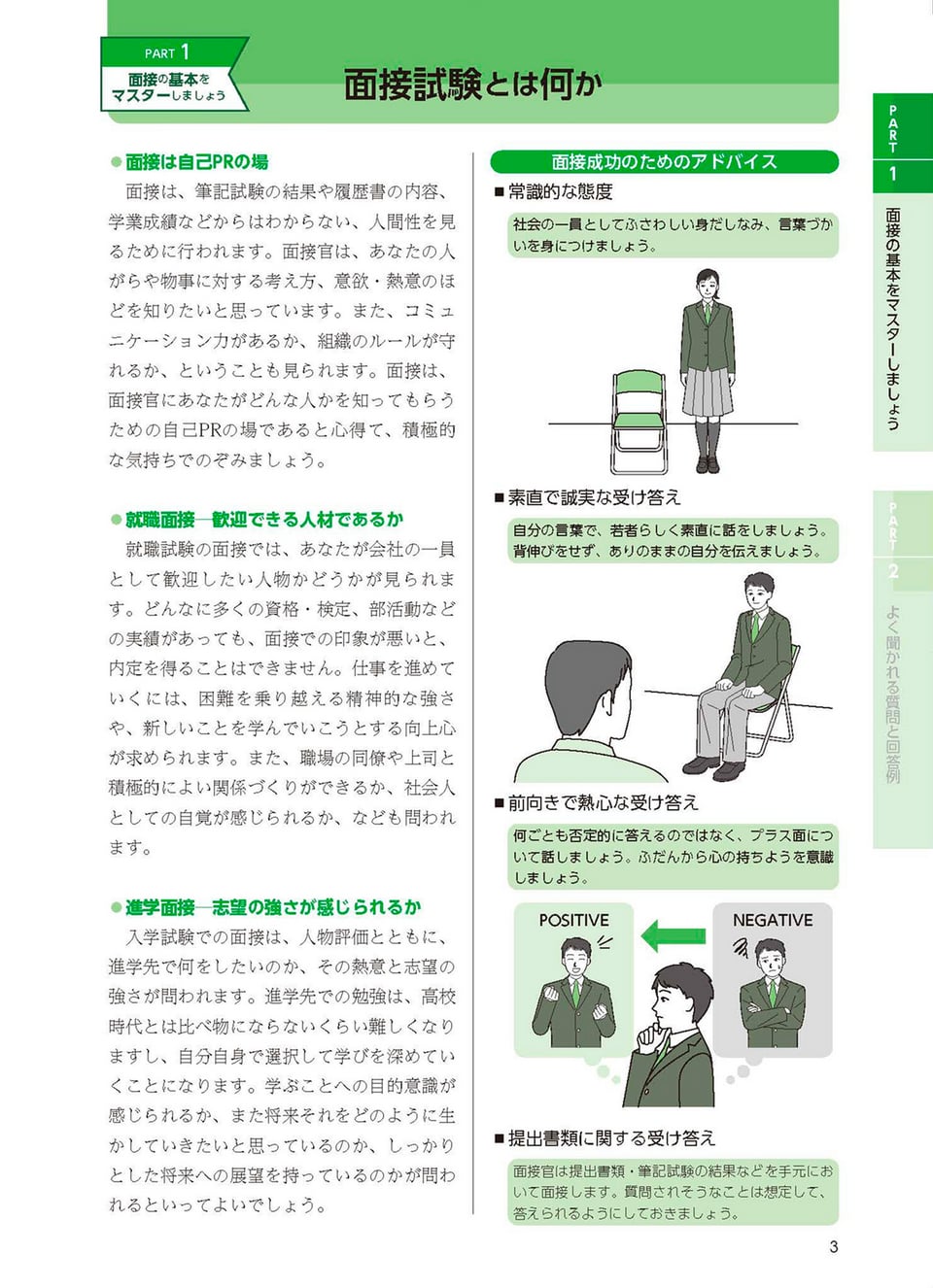 面接の基本をマスターしましょう:面接試験とは何か/自分についての理解/服装・持ち物の注意/感じの良い話し方・言葉づかい・態度 他