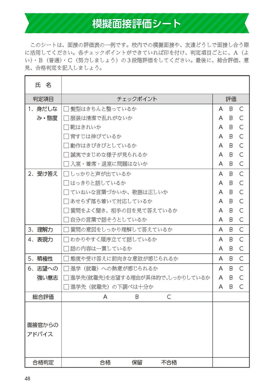 よく出る質問例と応答例:面接で聞かれる質問と解答例/進学・就職事例再現/模擬面接評価シート