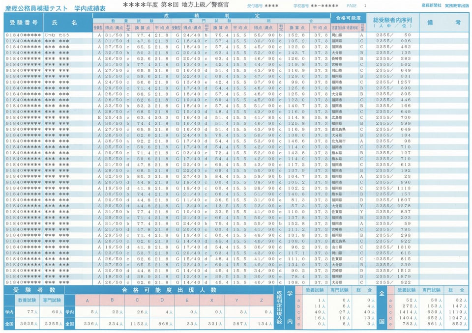 | お届けする資料 | 個人成績表(受験者用)、学内成績表(学校用) |