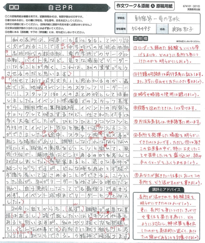 • 専門のスタッフが、文章の基本的なルールに加え、アピール力を高めるための改善点を具体的に指導します。