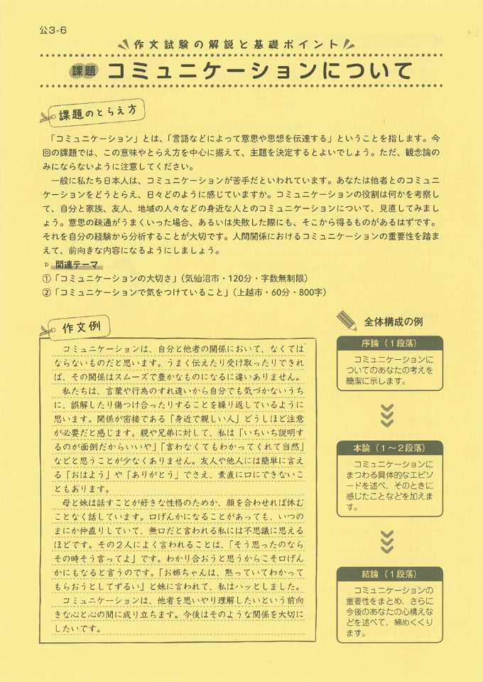 ・私が大切にしていること ・学校生活で得たこと ・チームワークについて思うこと ・失敗から学んだこと ・心に残る出会い ・最近印象に残った出来事 ・コミュニケーションについて
