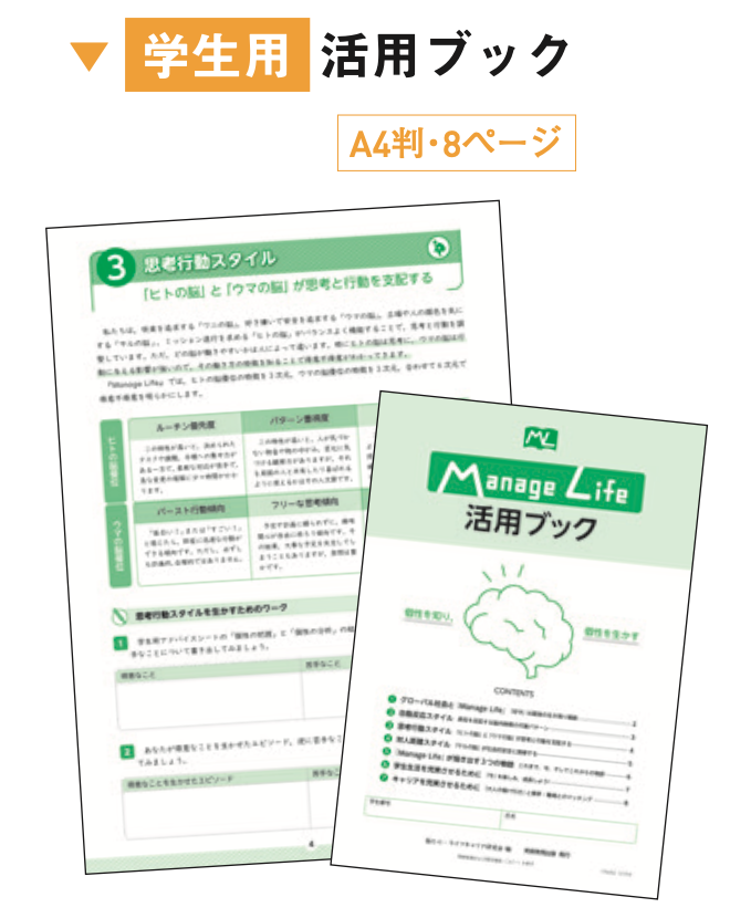 活用ブック(8ページ・A4判:学生用)、マニュアル(学校用)