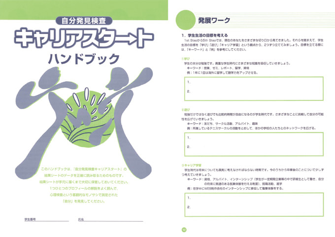 • 卒業後の職業選択を迫るにはまだ早い段階にある学生に、キャリア準備指導のためのツールとして活用できる検査教材です。自分の個性発見を促し、近い将来の就職活動を視野に入れた一歩早い就職支援活動を実現します。