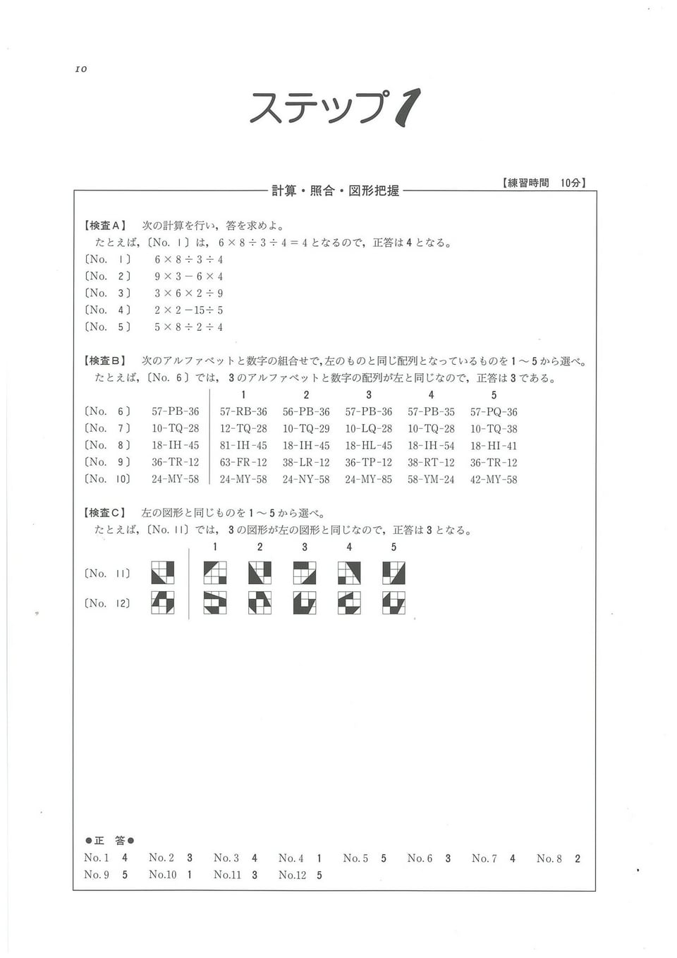 本試験と同じスタイル・レベルで構成された〈実戦編〉は、実戦力の養成とともに、適性検査に必須の〈スピード〉と〈正確性〉が養われます。国家一般職高卒程度公務員模擬試験と同形式の問題を、過去10年分収録していますので、受験対策の総仕上げに最適です。