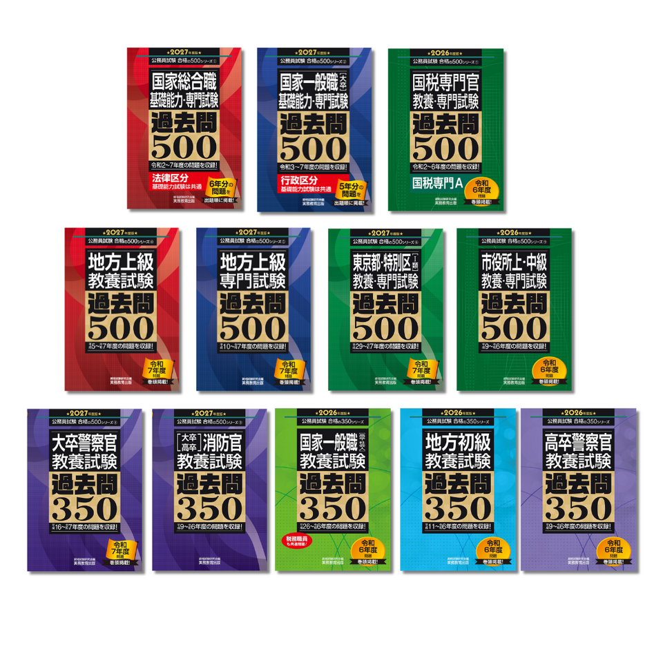 国家公務員試験や東京都・特別区など、試験問題が公表されている試験については、出題された順番どおりに全問を掲載しています。