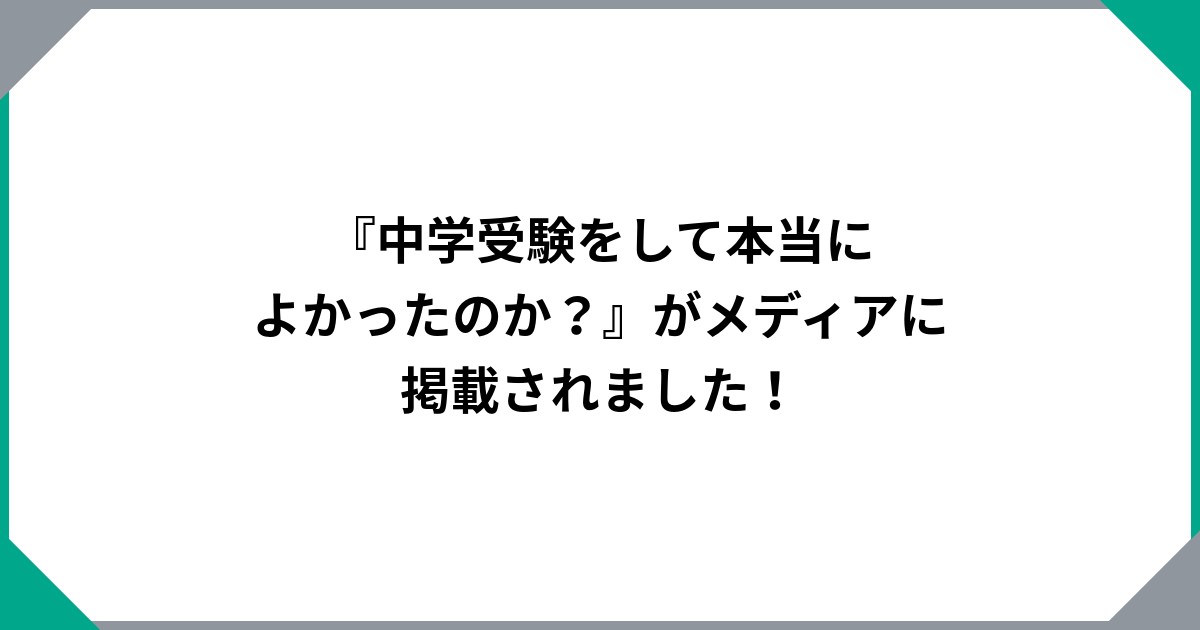 『中学受験をして本当によかったのか?』がメディアに掲載されました!