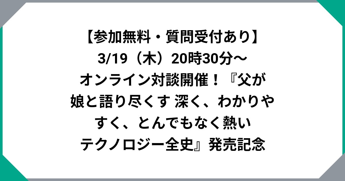 【参加無料・質問受付あり】3/19(木)20時30分~ オンライン対談開催!『父が娘と語り尽くす 深く、わかりやすく、とんでもなく熱い テクノロジー全史』発売記念