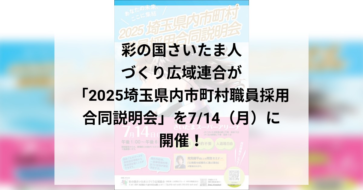 彩の国さいたま人づくり広域連合が「2025埼玉県内市町村職員採用合同説明会」を7/14(月)に開催!