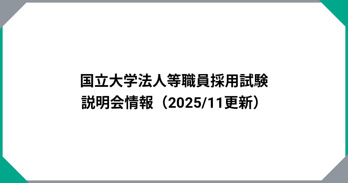 国立大学法人等職員採用試験 説明会情報(2025/11更新)
