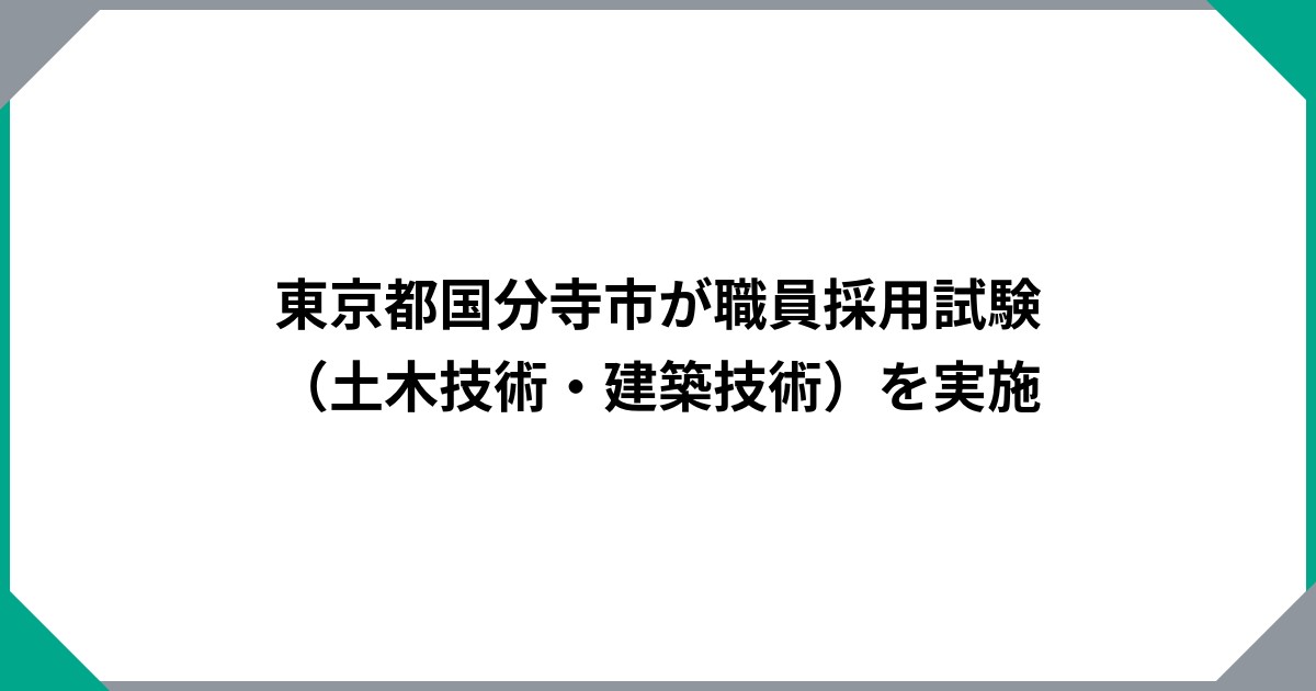 東京都国分寺市が職員採用試験(土木技術・建築技術)を実施