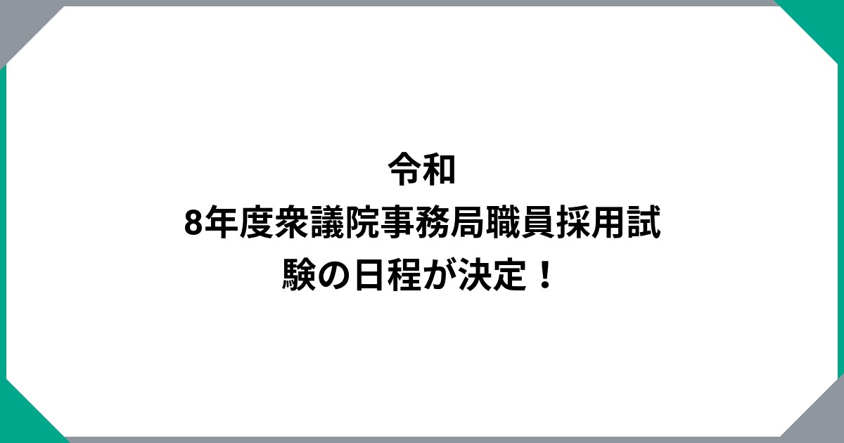 衆議院事務局より、令和8年度の衆議院事務局職員採用試験について発表がありました。概要は以下のとおりです。