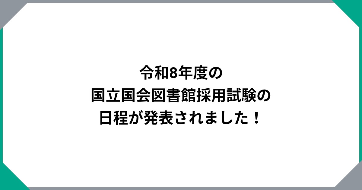 令和8年度の国立国会図書館採用試験の日程が発表されました!