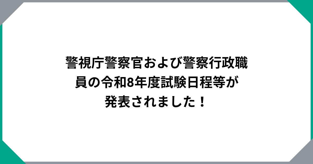 警視庁より、令和8年度の試験日程について発表がありました。概要は以下のとおりです。