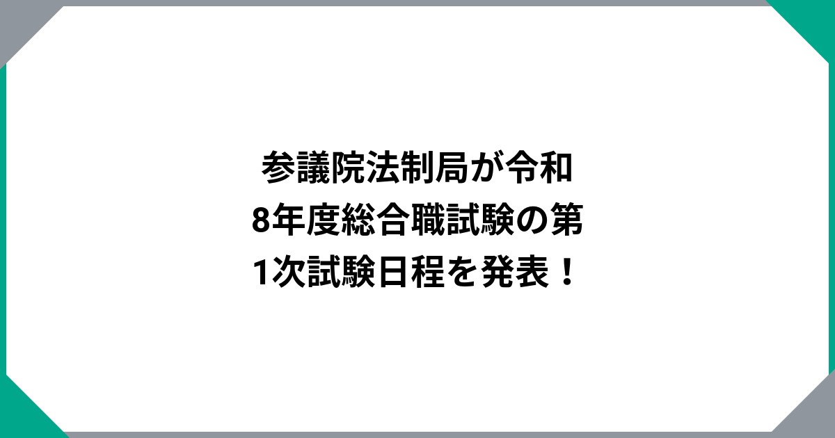 参議院法制局より、令和8年参議院法制局職員採用総合職試験の第1次試験の日程について発表がありました。概要は以下のとおりです。