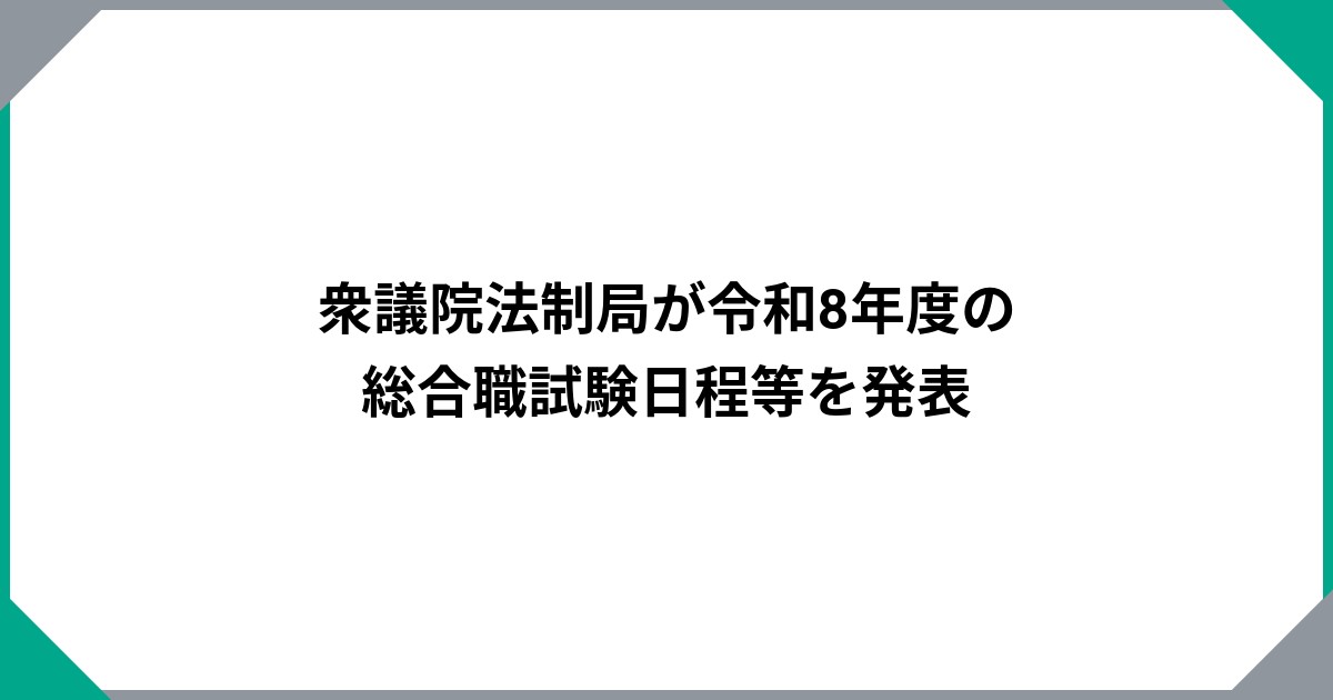 衆議院法制局より、令和8年度の総合職試験日程等について発表がありました。概要は以下のとおりです。