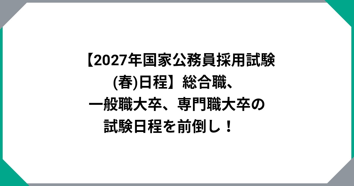 人事院より、2027年の国家公務員採用総合職試験(春)の日程について発表がありました。概要は以下のとおりです。