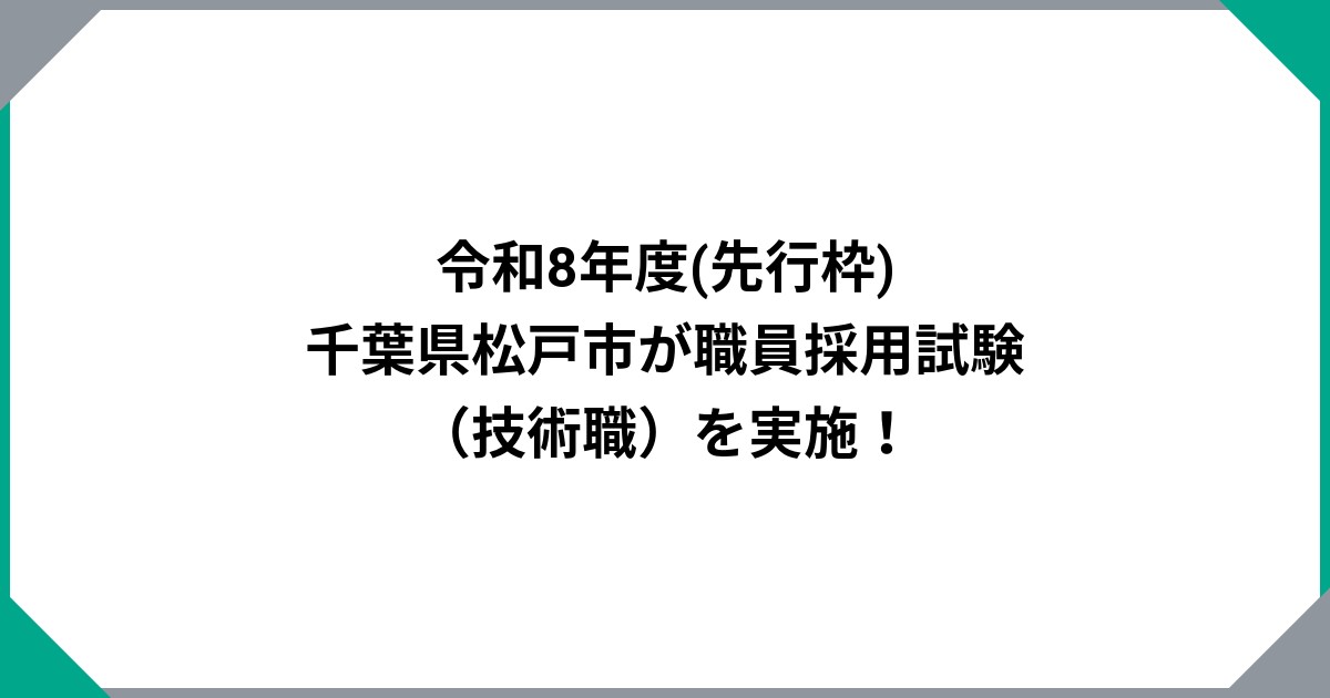 令和8年度(先行枠)千葉県松戸市が職員採用試験(技術職)を実施!
