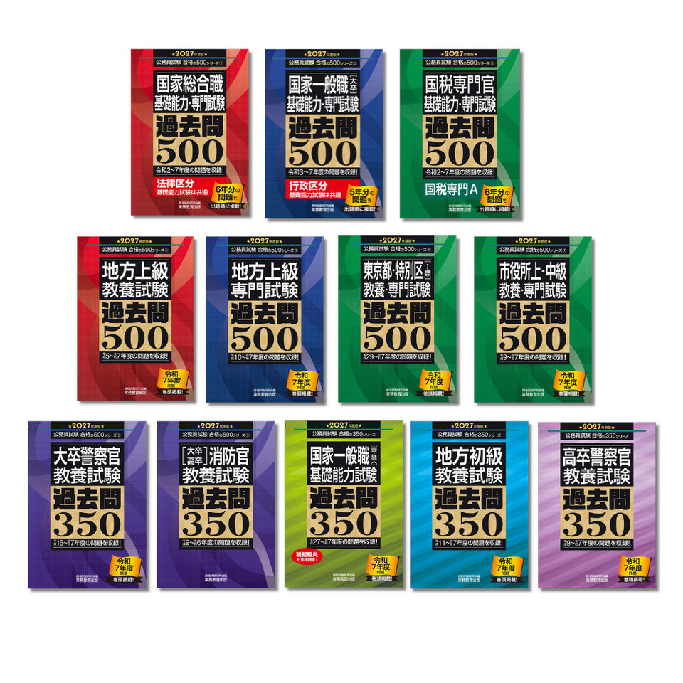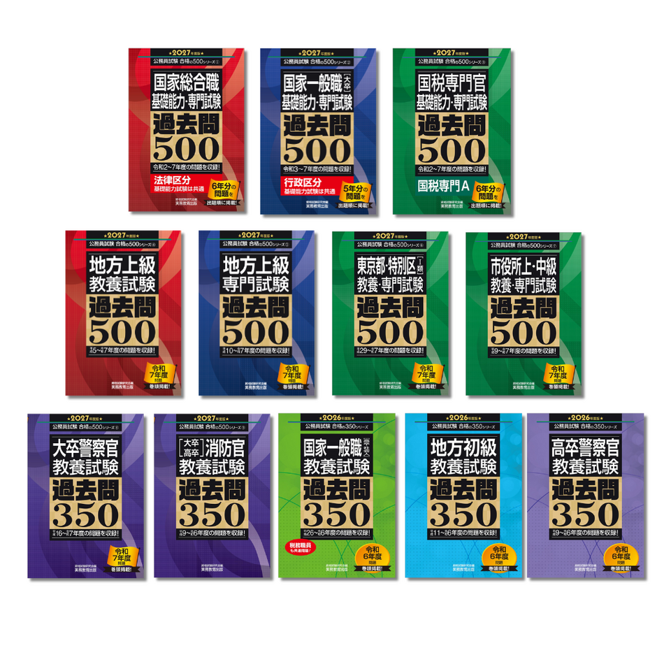 国家公務員試験や東京都・特別区など、試験問題が公表されている試験については、出題された順番どおりに全問を掲載しています。