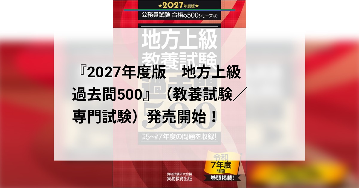 『2027年度版 地方上級 教養試験 過去問500』&『2027年度版 地方上級 専門試験 過去問500』の販売を開始しました!