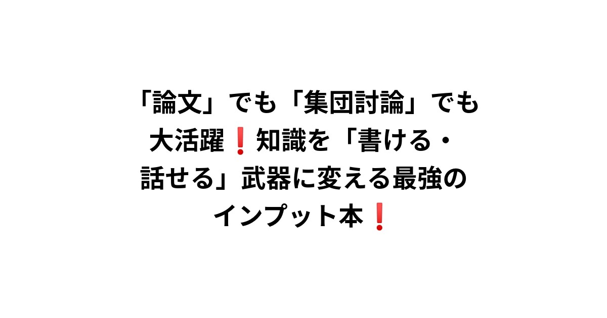 「論文」でも「集団討論」でも大活躍❗️知識を「書ける・話せる」武器に変える最強のインプット本❗️