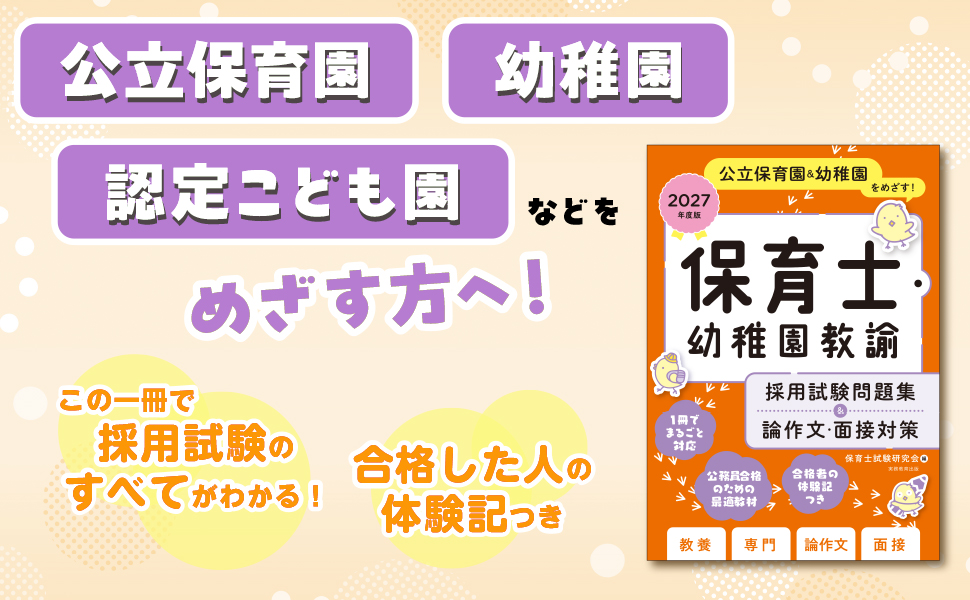 『保育士・幼稚園教諭 採用試験問題集&論作文・面接対策』は、最新の試験傾向を徹底分析した「問題集」と、対策が後回しになりがちな「論作文・面接」をギュッと一冊に凝縮しました✌️