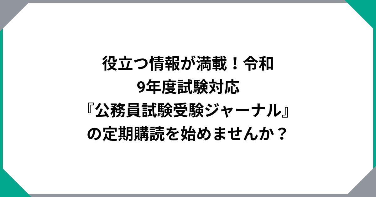 役立つ情報が満載!令和9年度試験対応『公務員試験受験ジャーナル』の定期購読を始めませんか?